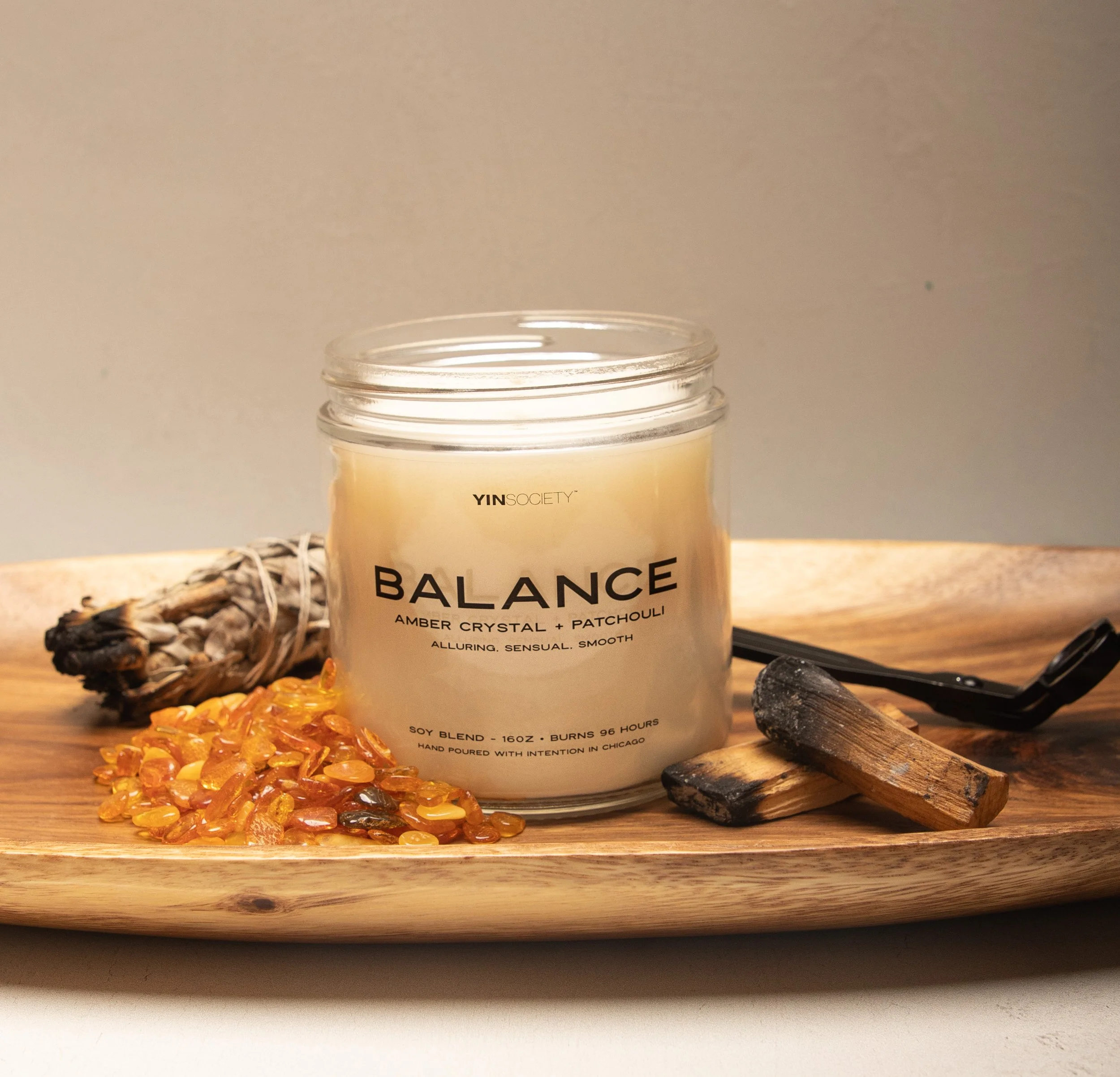 Our featured candle for Fall is the brand new BALANCE candle scent. Alluring, sensual, and smooth; this Amber Crystal and Patchouli scent seamlessly balances Divine Masculine and Feminine energies. It’s perfect for winding down after work, sipping tea and wine with friends, romantic evenings or relaxing on weekends.